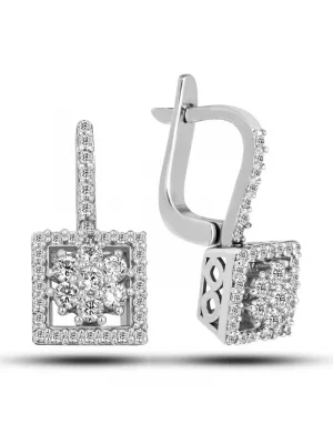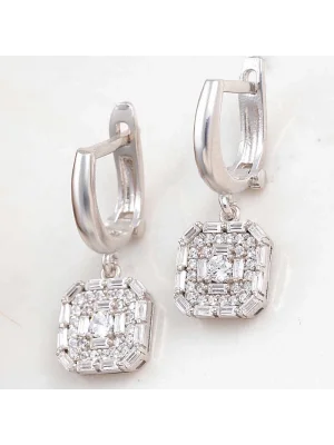 Gümüş Kare Zirkon Taşlı Kadın Küpe