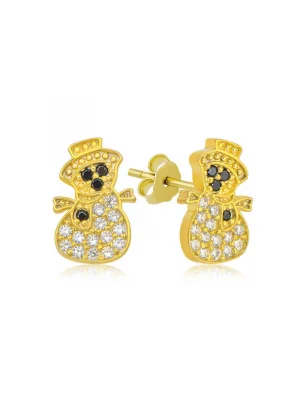 Gümüş Gold Beyaz Taşlı Üçgen Küpe
