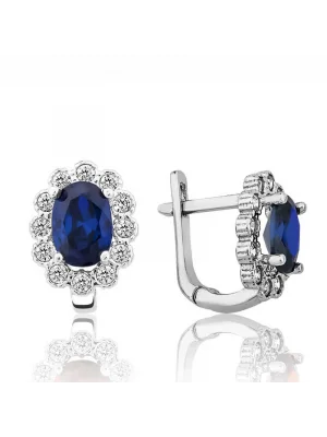 Gümüş Mavi Çiçek Desenli J Kadın Küpe