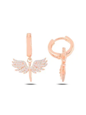 Gümüş Rose Beyaz Taşlı Üçgen Küpe