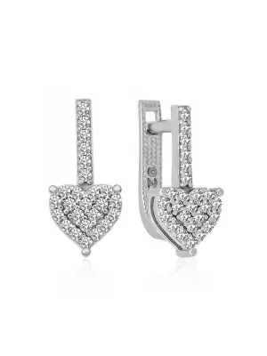 Gümüş Sallantılı Kalp Taşlı Küpe