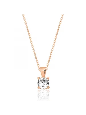 Gümüş Rose Çiğ Damlası Yuvarlak Tektaş Bayan Kolye