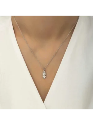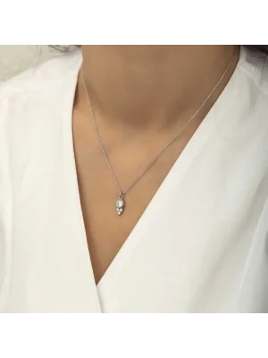 Gümüş Çiğ Damlası Mekik Tektaş Bayan Kolye