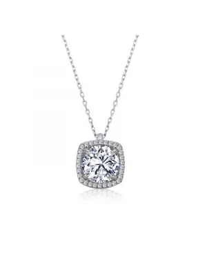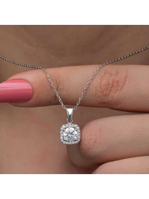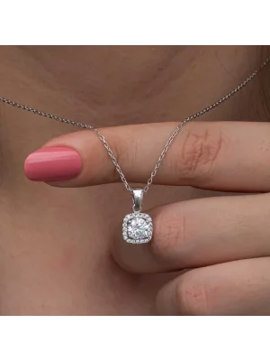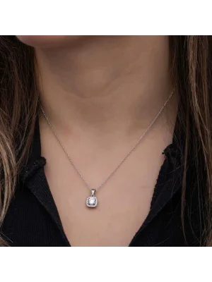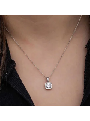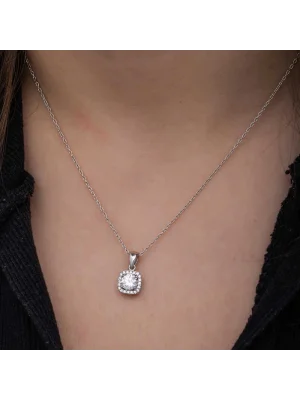 Gümüş Kare Montür Tek Taş Kadın Kolye