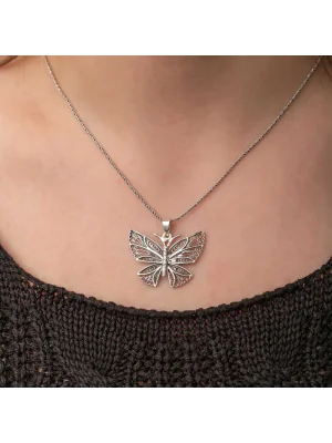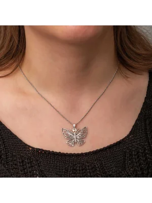 Gümüş Telkari Kelebek Kadın Kolye