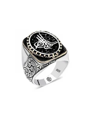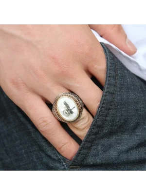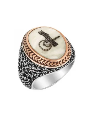Gümüş Sedef Üzeri Tuğralı Erkek Yüzük