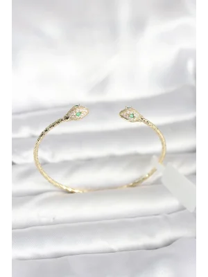 Yılan Model Pirinç Gold Renk Kadın Kelepçe Bileklik