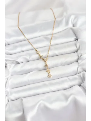 316L Çelik Zirkon Taşlı Çiçek Model Gold Renk Kadın Kolye