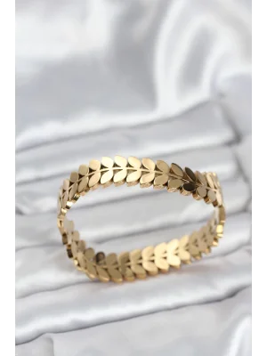 Pirinç Gold Renk Yaprak Model Kadın Bileklik