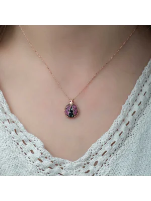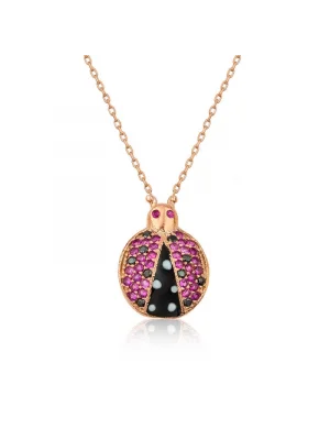 Gümüş Rose Uğur Böceği Şans Kadın Kolye