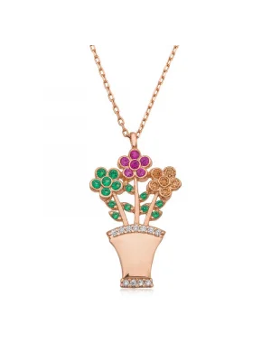 Gümüş Çiçek Buketi Bayan Kolye