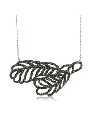 Gümüş Siyah Çiçek Bayan Kolye