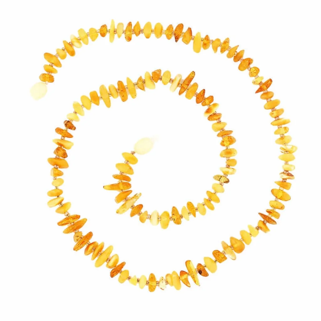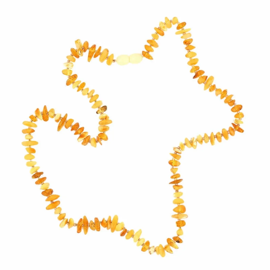 Kehribarın hem fiziksel hem metafiziksel etkisi vardır. Aynı zamanda kehribar para taşı olarak bilinir. Bereketi arttırdığına inanılır. Kehribar kolye olarak kullanıldığında astım, alerji, guatr, tiroid gibi şikayetlerde gerileme sağlar. aynı zamanda kehribarın ağrı kesici etkisi bel ağrısı, baş ağrısı migren gibi şikayetlere iyi gelir. Kehribar bileklik eklem ve romatizmal ağrılarda etkilidir. Aynı zamanda negatif enerjilere karşı koruyucu etki eder. Kehribar aynı nazar boncuğu gibi etki sağlar. Ten teması ve ten ısısı ile etki eder. Kehribar kolye bölgesel etki eder. İpek iplikten yapılmıştır, her boncuğun arası ayrı ayrı düğümlüdür. Kehribar kolyelerin arkasında gizli plastik vidalı klips vardır. Kehribarın etkisini göstermesi kişinin bünyesine ve büyüme atağına bağlı olarak 24 ila 72 saat  arasında zaman almaktadır. Kehribar kullanıldıkça ve tena temas ettikçe etkisini gösterir. Yetişkinlerde ortalama uygun standart ebat 65cm-70cmdir. Kolyeler herkes için en gözde süsler arasındadır. Kehribar şıklığından ödün vermeyen Yetişkinlerin severek kullanacakları bir aksesuar olacaktır. Ürünlerimizin tamamı el emeği ile üretilmiştir ve değerli taşlar nedeniyle ürün ağırlığında ± %10 sapma olabilmektedir.