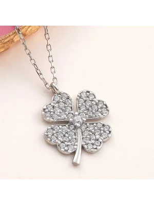 Gümüş Renkli Taşlı Yonca Kadın Kolye