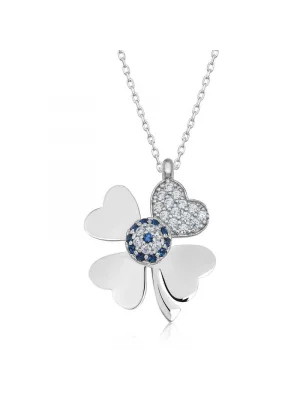 Gümüş Nazarlı Dört Yapraklı Yonca Kadın Kolye