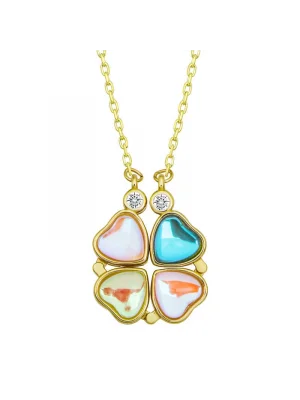 Gümüş Gold Kalpli Açılabilen Yonca Kadın Kolye