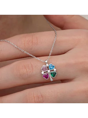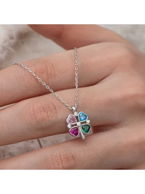 Gümüş Rose Renkli Taşlı Yonca Kadın Kolye