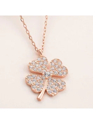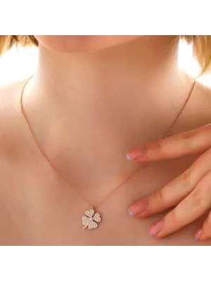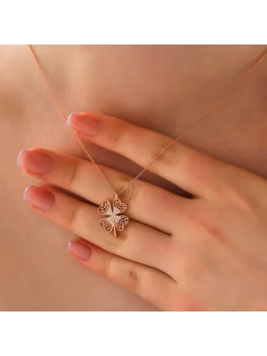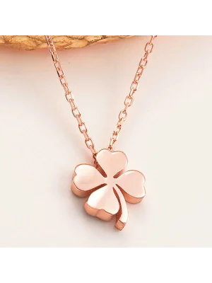 Gümüş Rose Dört Yapraklı Yonca Kadın Kolye