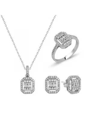 Gümüş Trapez Taşlı Bayan Set