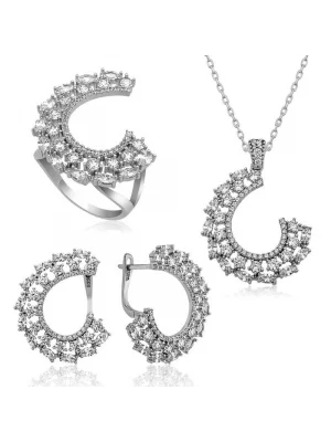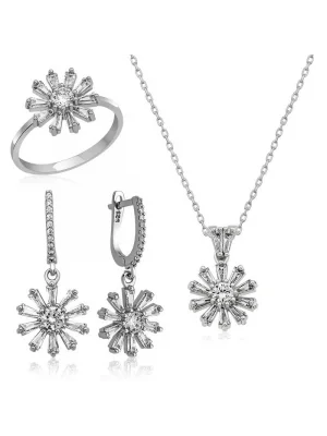 Gümüş Zirkon Taşlı Çiçek Kadın Set