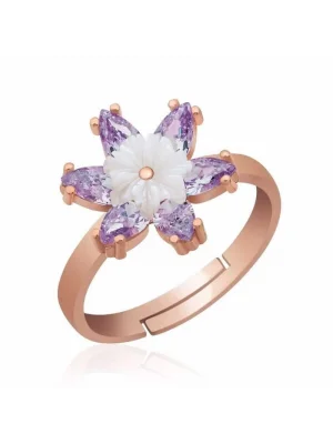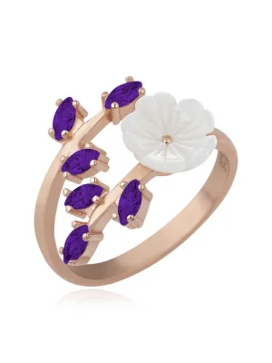 Gümüş Rose Mor Yapraklı Bahar Çiçeği Yüzük