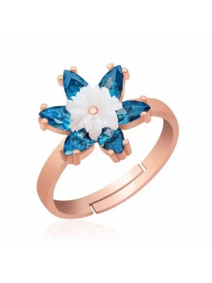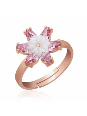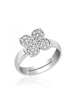 Gümüş Rose Ayarlanabilir Beyaz Taşlı Yaprak Kadın Yüzük