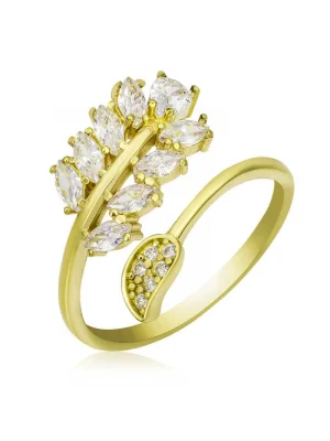Gümüş Gold Ayarlanabilir Beyaz Taşlı Yaprak Kadın Yüzük