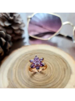 Gümüş Rose Mor Lotus Çiçeği Yüzük